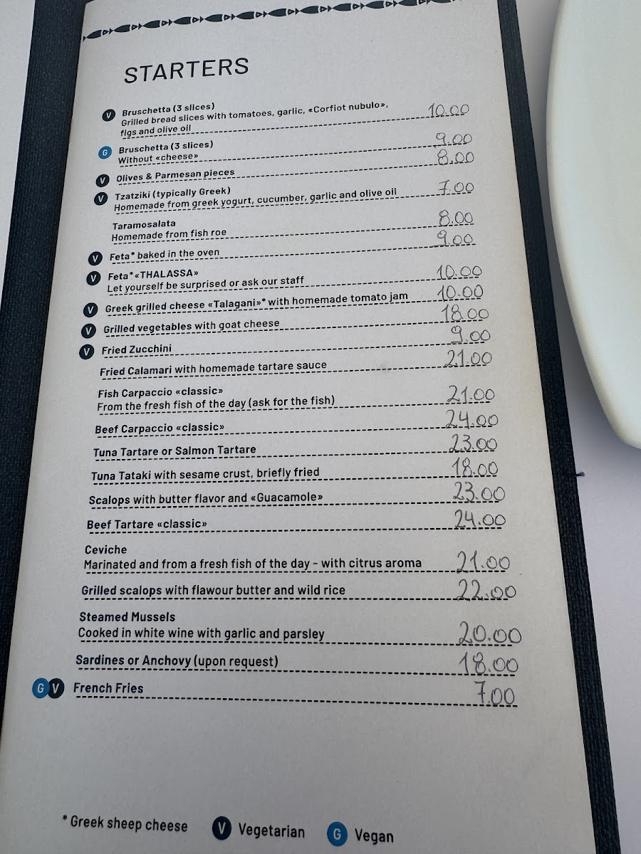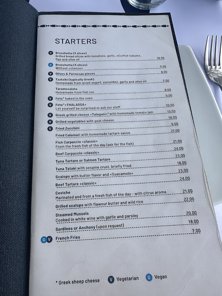 Thalassa - Sea Food Taverna Menu